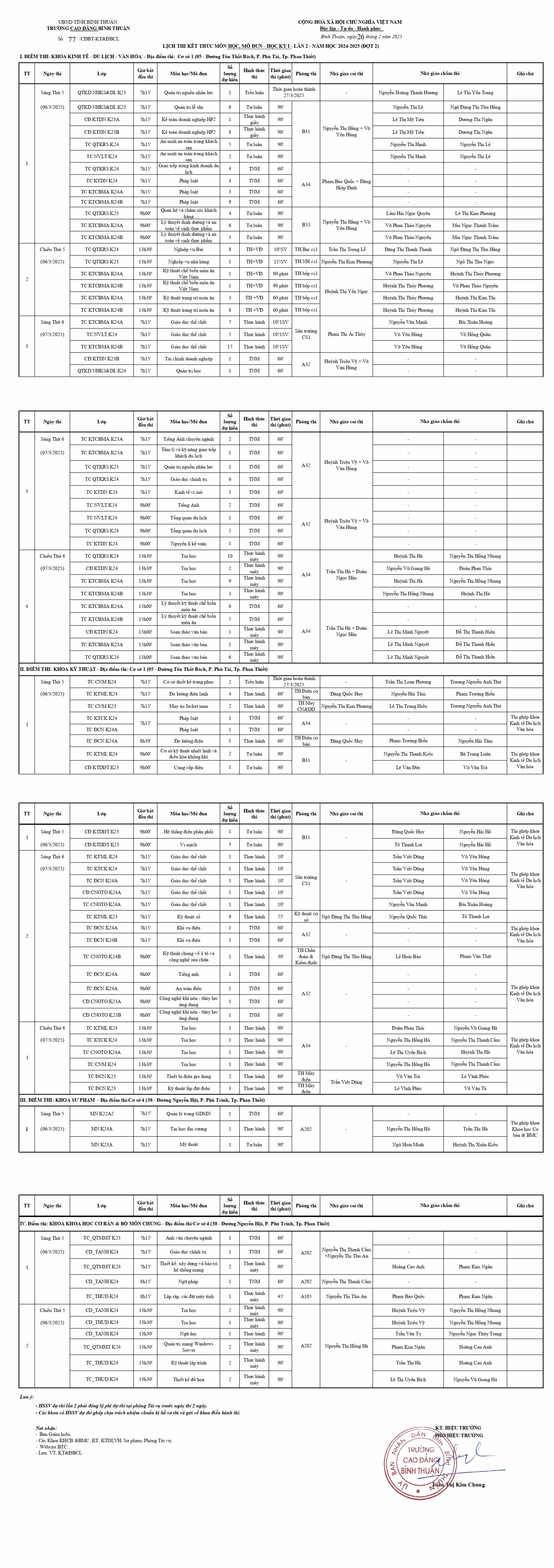 Lịch thi kết thúc môn học, mô-đun HKI, lần 2, năm học 2024-2025 (Đợt 2, các khoa: Kỹ thuật, Sư phạm, KT-DL-VH, KHCB&BMC)