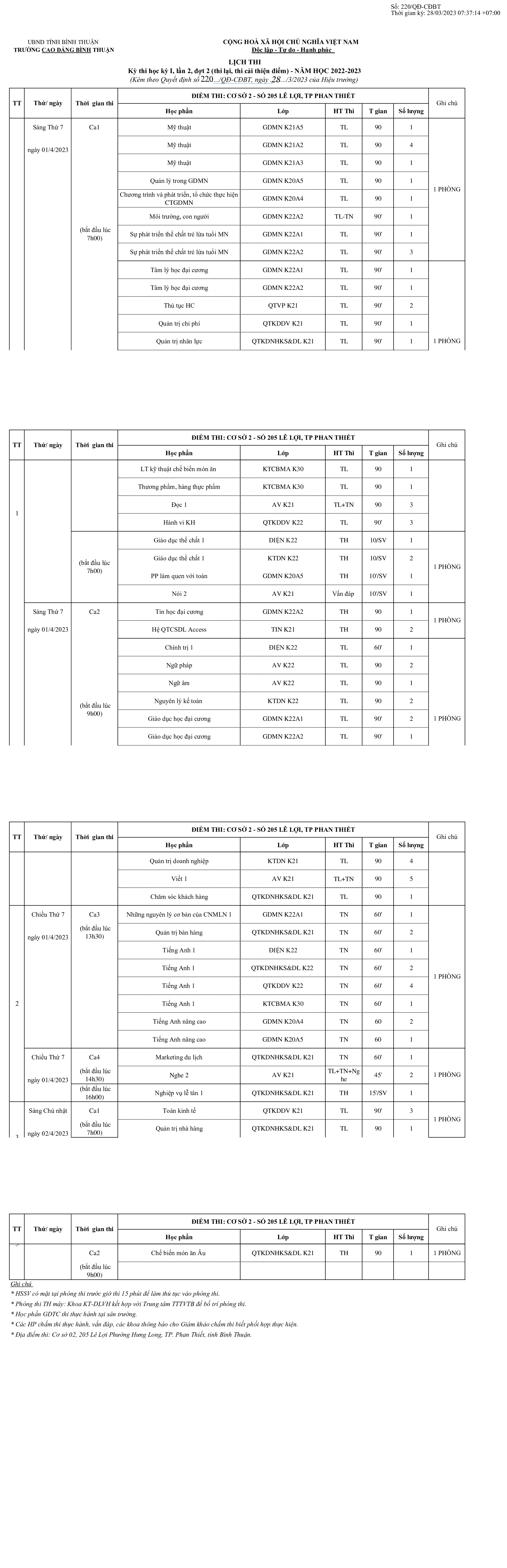 TRƯỜNG CAO ĐẲNG BÌNH THUẬN