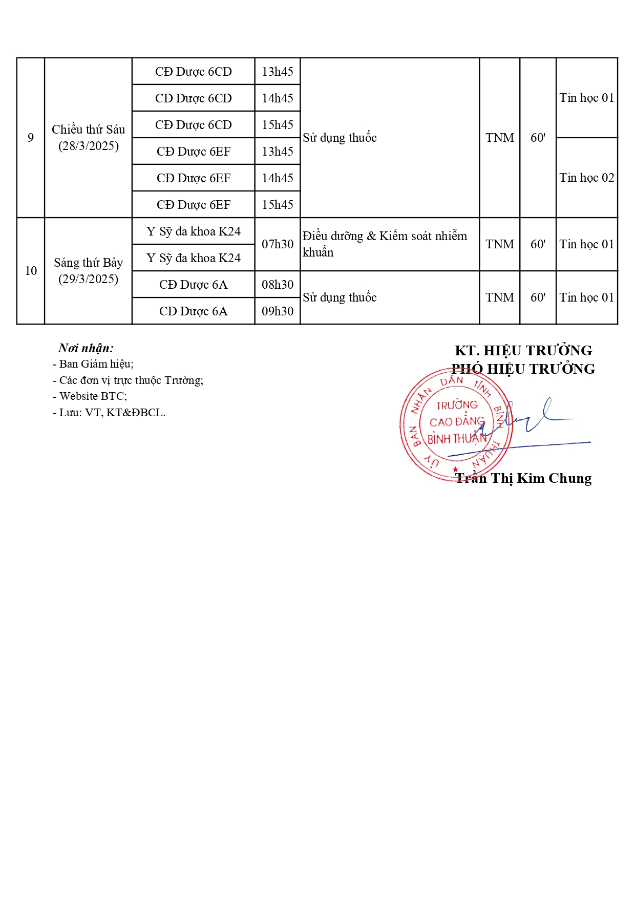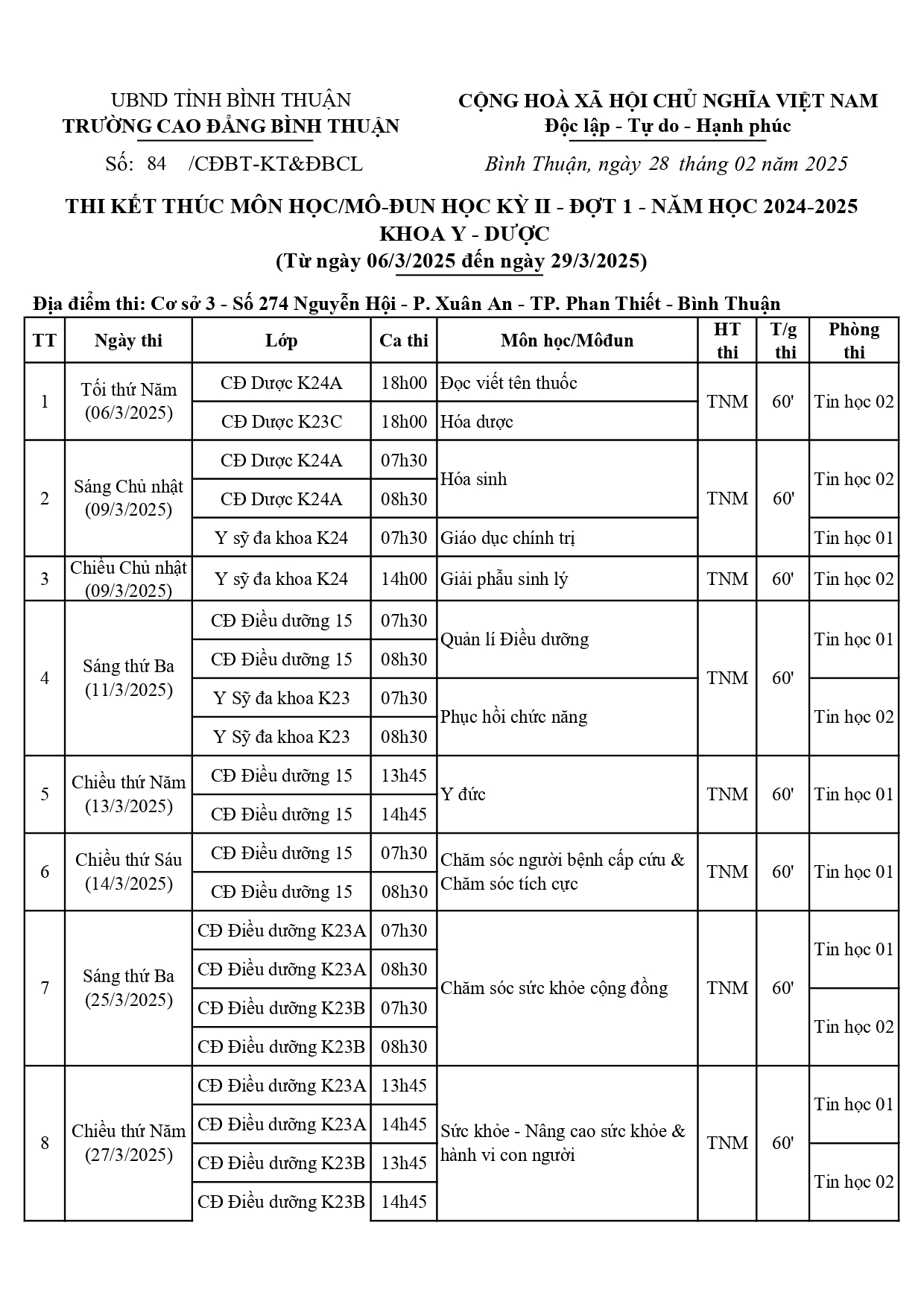 LỊCH THI KẾT THÚC MÔN HỌC/MÔ-ĐUN HỌC KỲ II - ĐỢT 1 - NĂM HỌC 2024-2025 KHOA Y - DƯỢC (Từ ngày 06/3/2025 đến ngày 29/3/2025)