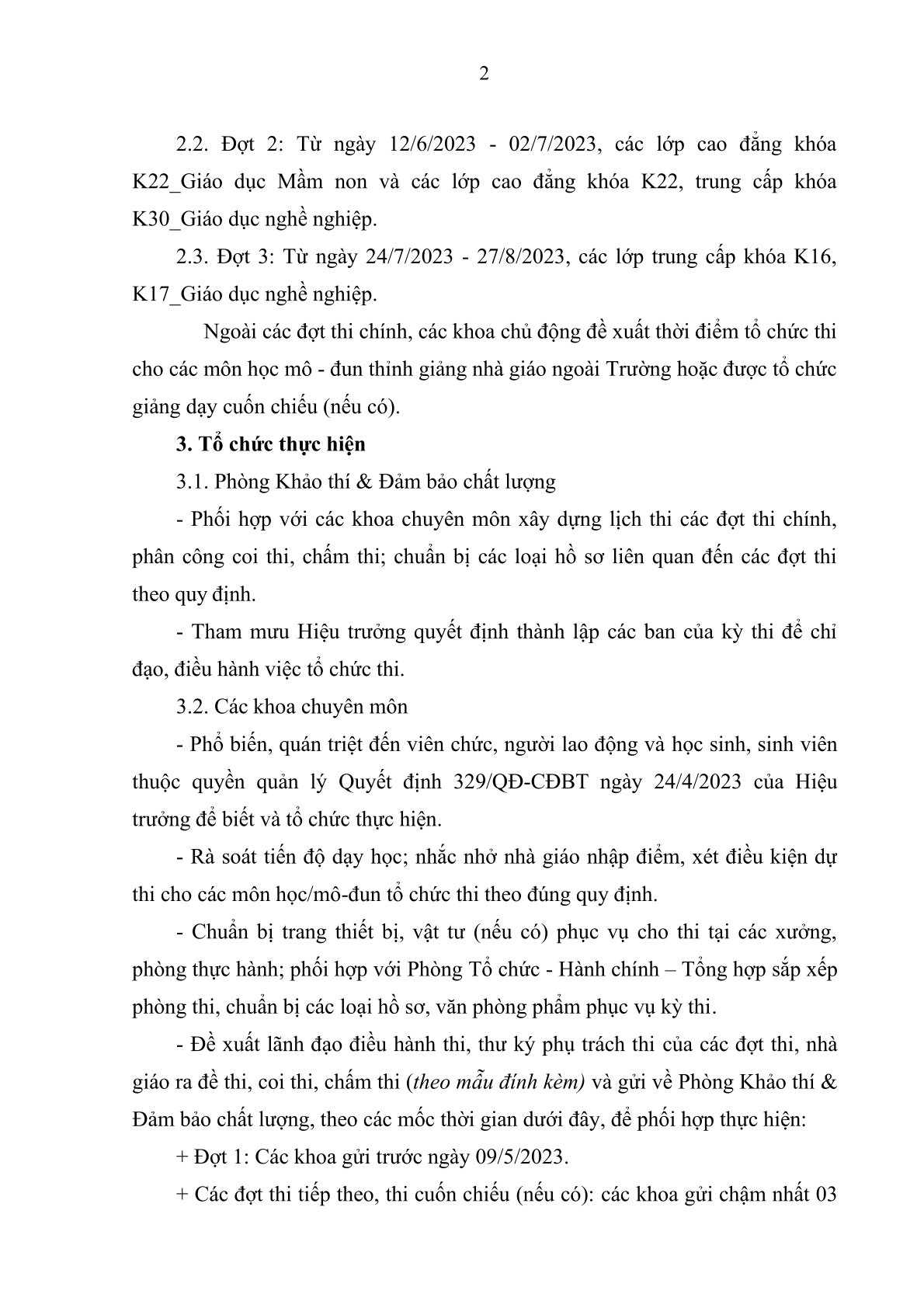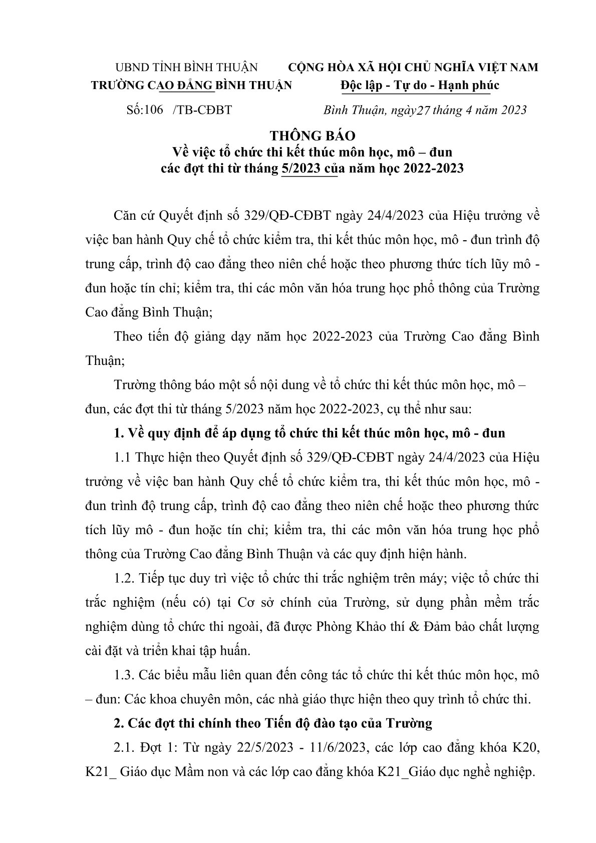 Kế hoạch thi kết thúc môn học, mô – đun các đợt thi từ tháng 5/2023 của năm học 2022-2023