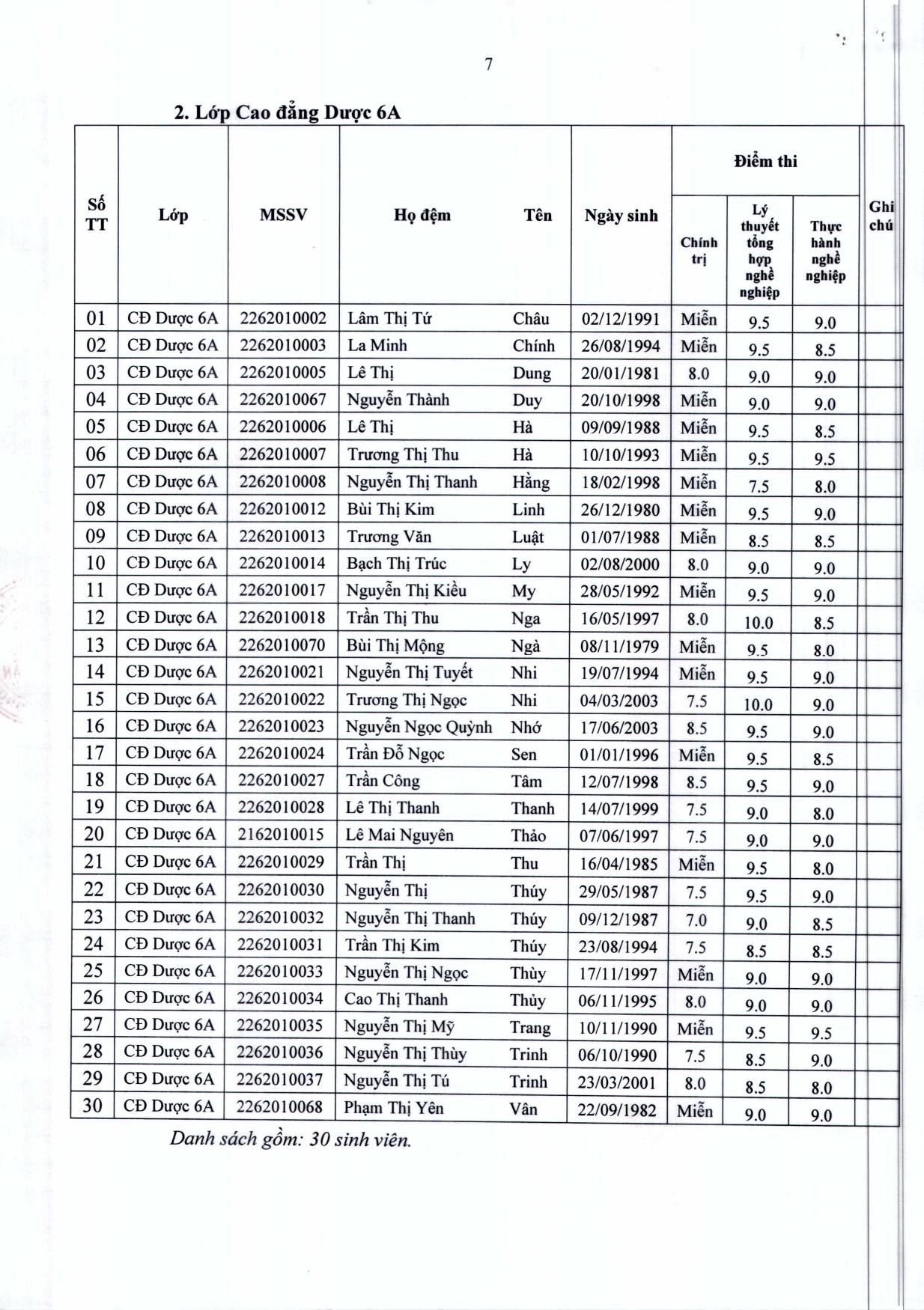 Kết quả thi tốt nghiệp các lớp đào tạo theo niên chế năm 2025