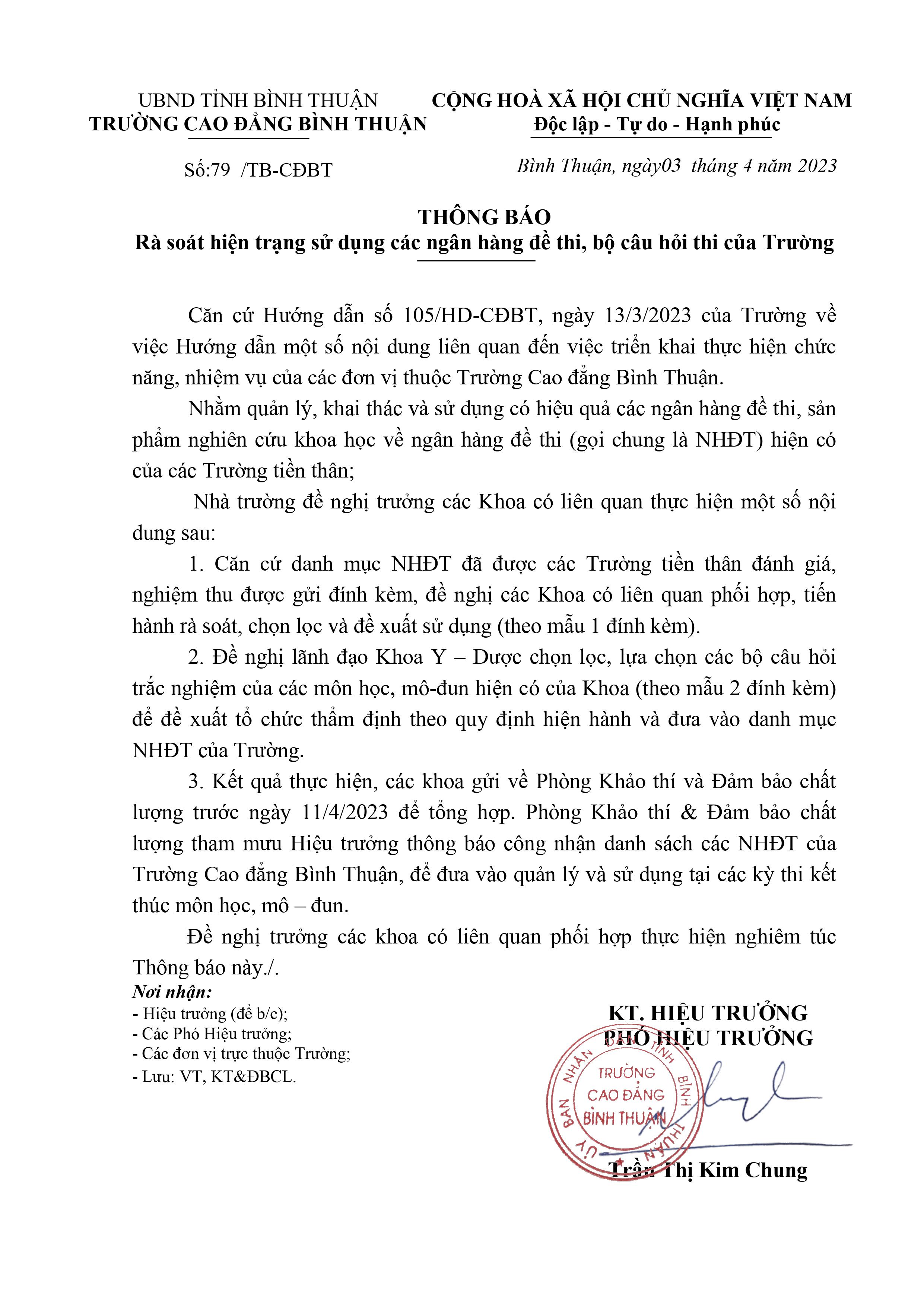 Thông báo rà soát hiện trạng sử dụng ngân hàng đề thi